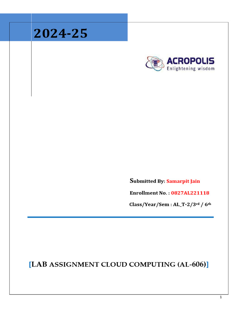 m p u t i n g a n d i t s a p p l i c a t i o n s . A l s o d e m o n s t r a t e a w o r k i n g u n d e r s t a n d i n g o f t h e v a r i o u s C l o u dc o m