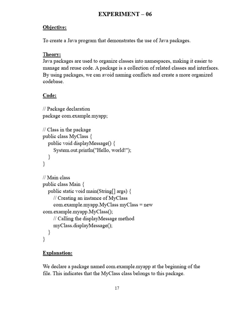 In this example, we demonstrate the use of Java packages by creating a