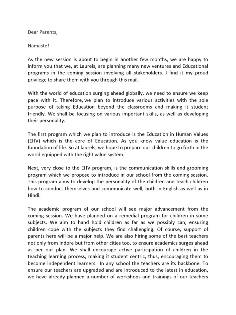inform you that we, at Laurels, are planning many new ventures and Educational