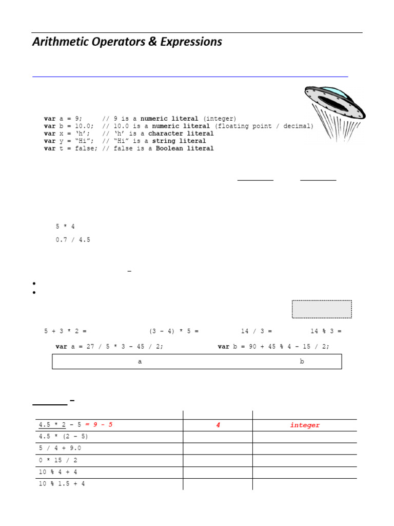 “JS_” + “5.” + 4.2 = __________ “2” + 2.0 = ______ 2 + 2.0 = _____