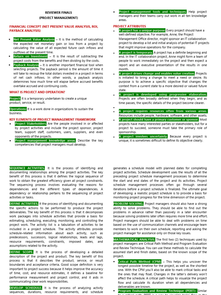 REVIEWER FINALS Project management tools and techniques.
