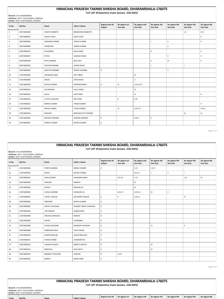 CUT LIST (Polytechnic Exam Session: JUN-2025)