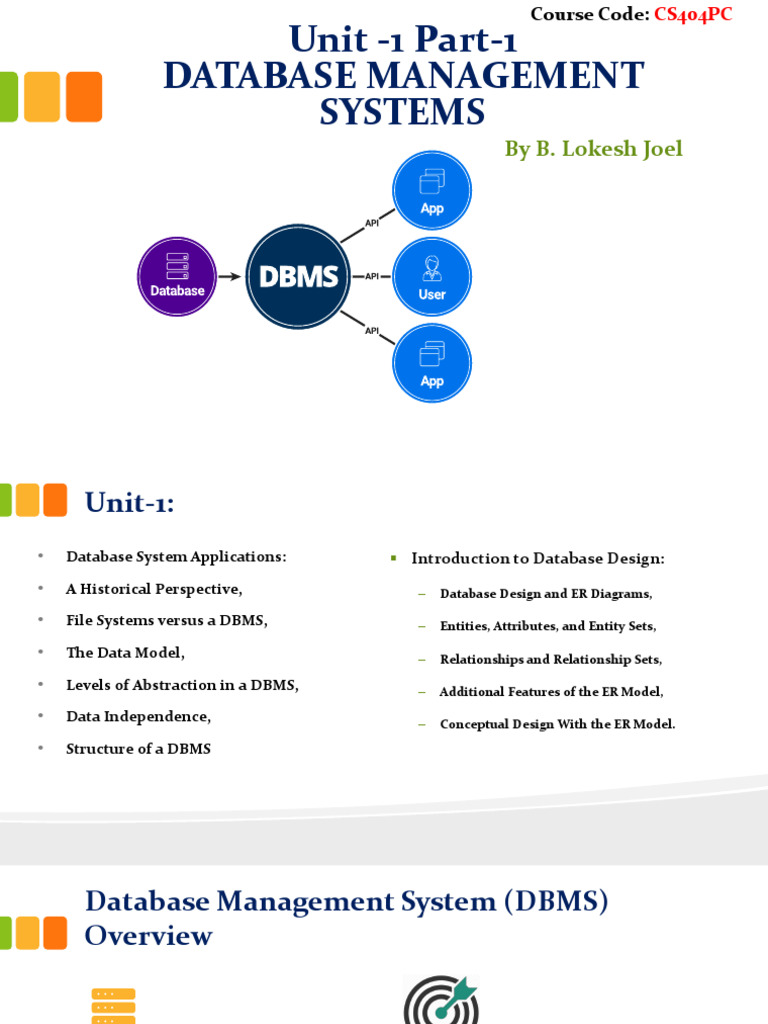 • Database System Applications: ▪ Introduction to Database Design:
