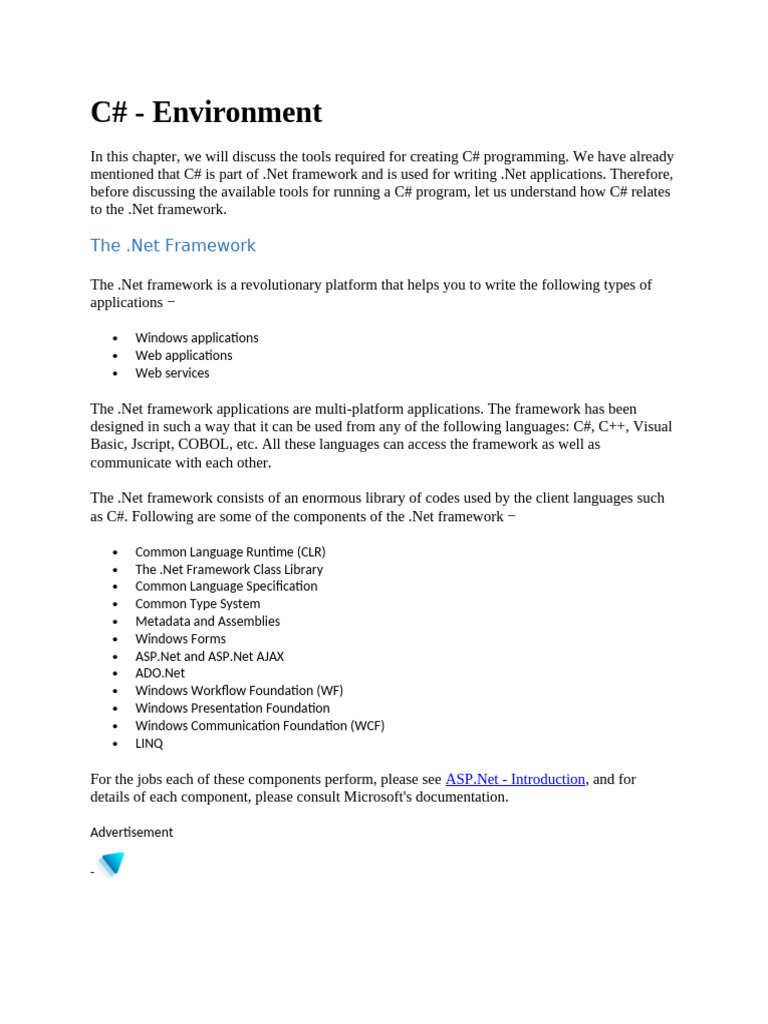 mentioned that C# is part of .Net framework and is used for writing .Net applications. Therefore,
