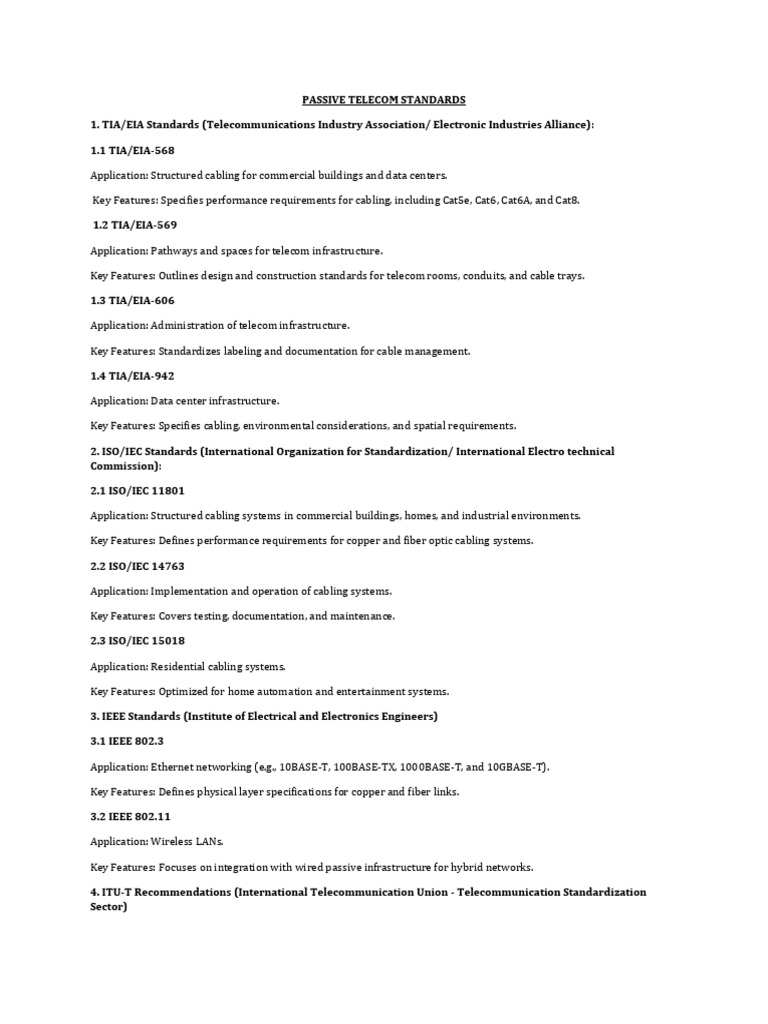 Key Features: Defines performance requirements for copper and fiber optic cabling systems.
