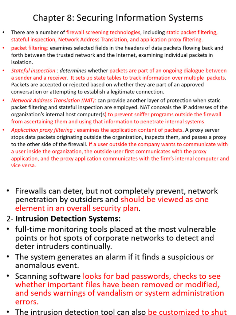 packet filtering and stateful inspection are employed. NAT conceals the IP addresses of the