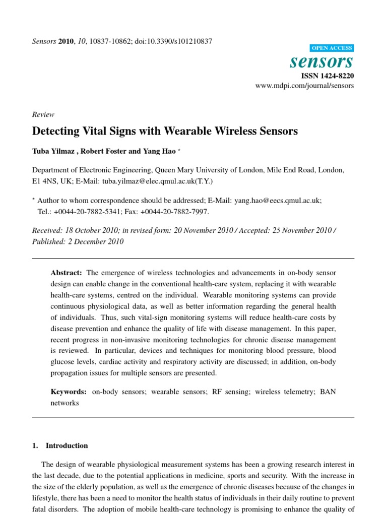 Sensors: Detecting Vital Signs With Wearable Wireless Sensors