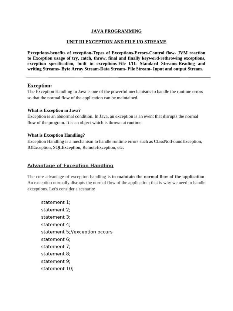 Suppose there are 10 statements in a Java program and an exception occurs at statement 5; the