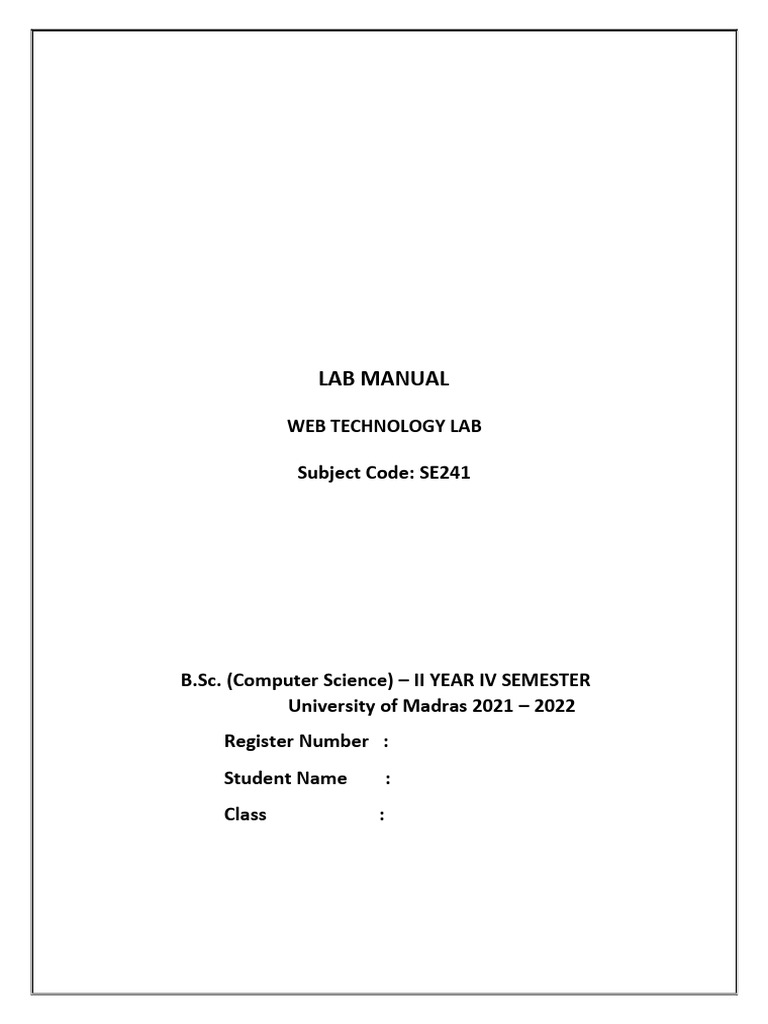 PRACTICAL IV WEB TECHNOLOGY LAB II YEAR / IV SEM
