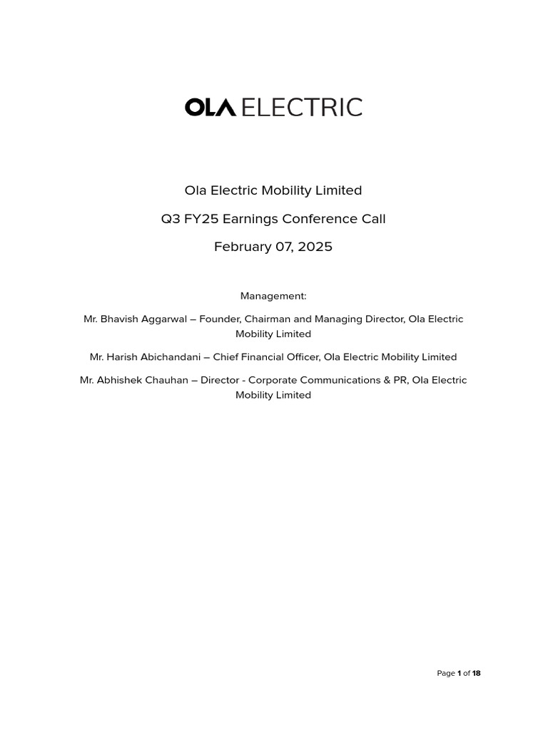 OlaElectric-Earnings Transcript Q3FY2025