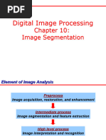The document discusses feature extraction and image segmentation in image processing, emphasizing the importance of transforming images into quantifiable features for easier analysis. It categorizes features into low-level and high-level, detailing various attributes such as geometrical and topological characteristics. The document also outlines the processes involved in feature extraction, including image preprocessing, desired feature extraction, and invariant extraction, along with techniques for point, line, and edge detection.