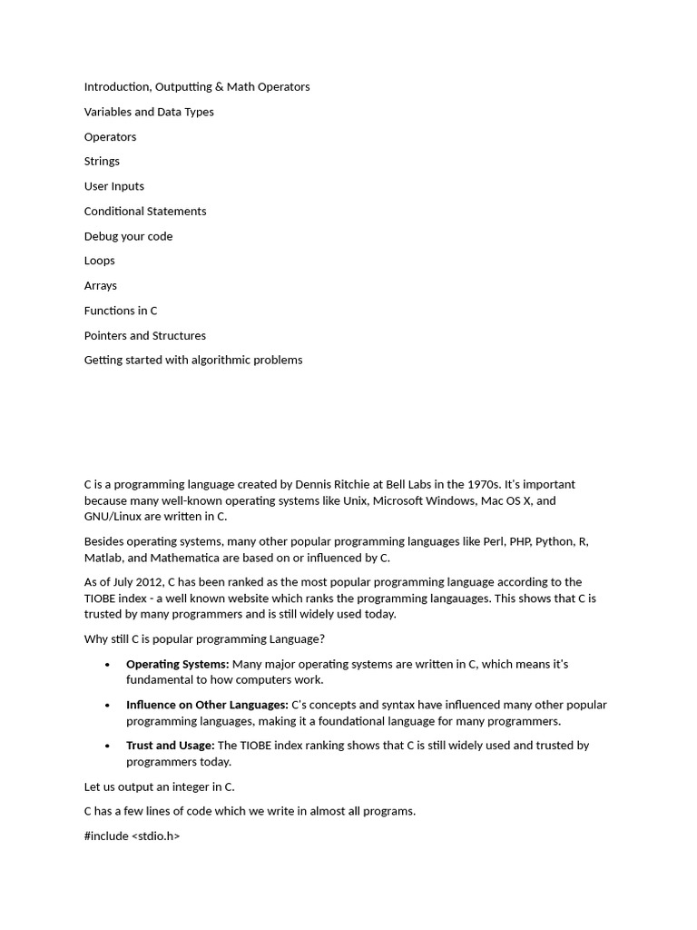 C is a programming language created by Dennis Ritchie at Bell Labs in the 1970s. It's important