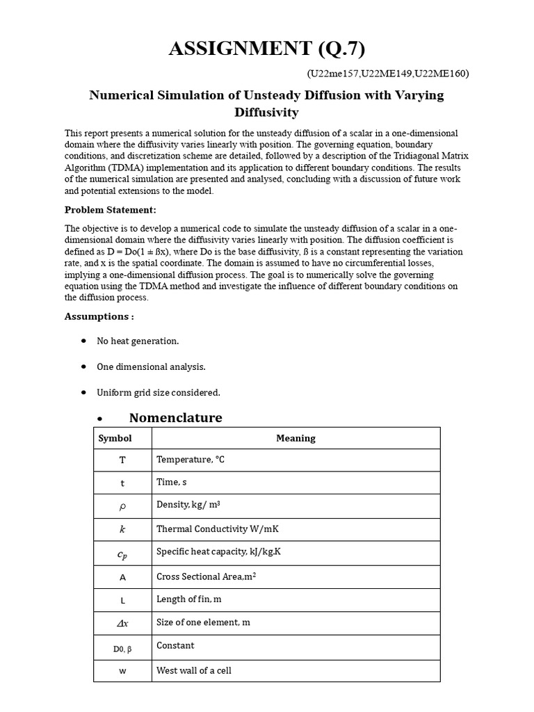 This report presents a numerical solution for the unsteady diffusion of a scalar in a one-dimensional