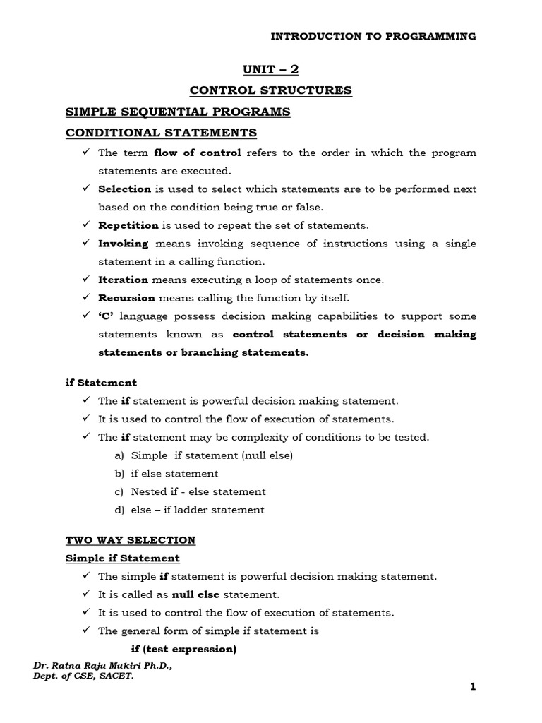 CONTROL STRUCTURES