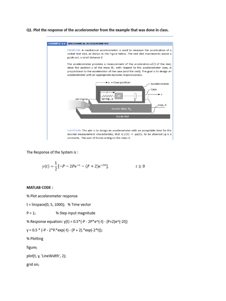 Q1. Plot the response of the accelerometer from the example that was done in class.