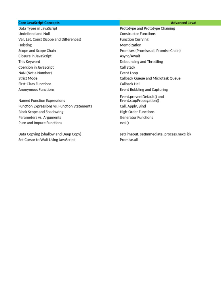 Core JavaScript Concepts Advanced JavaScript Concepts