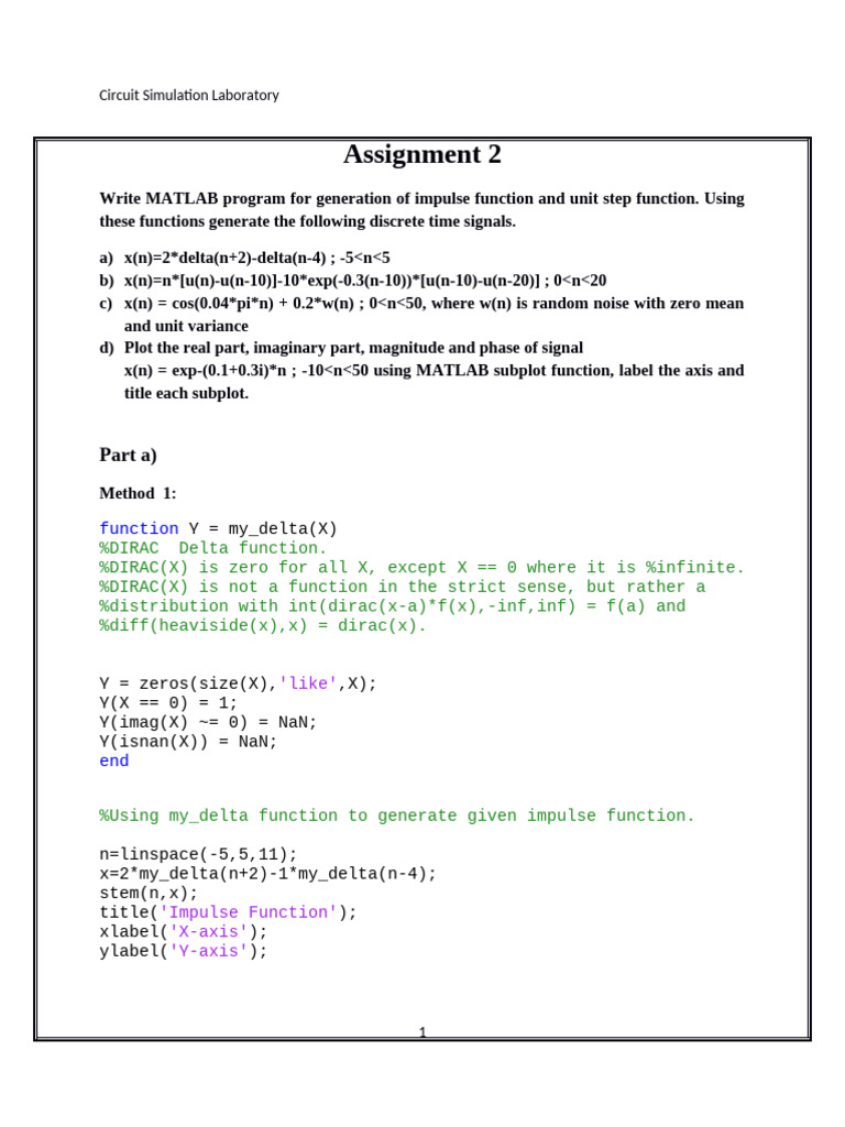 Write MATLAB program for generation of impulse function and unit step function. Using