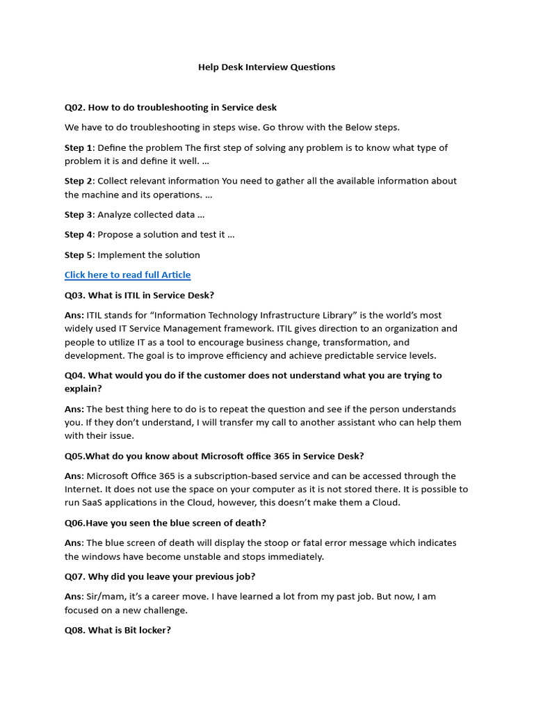 Ans: ITIL stands for “Information Technology Infrastructure Library” is the world’s most