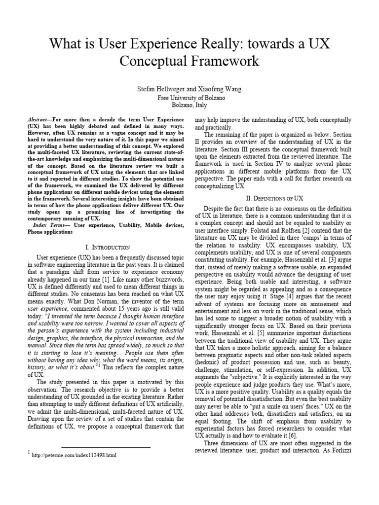 definitions of UX, we propose a conceptual framework that experiential factors has forced researchers to consider what