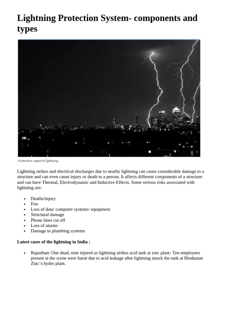 Lightning protection systems are designed to protect structures getting damaged during heavy