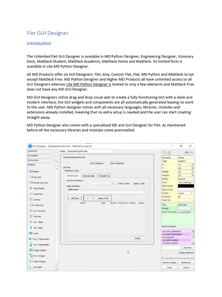 GUI Designers whereas Lite MD Python Designer is limited to only a few elements and MatDeck Free