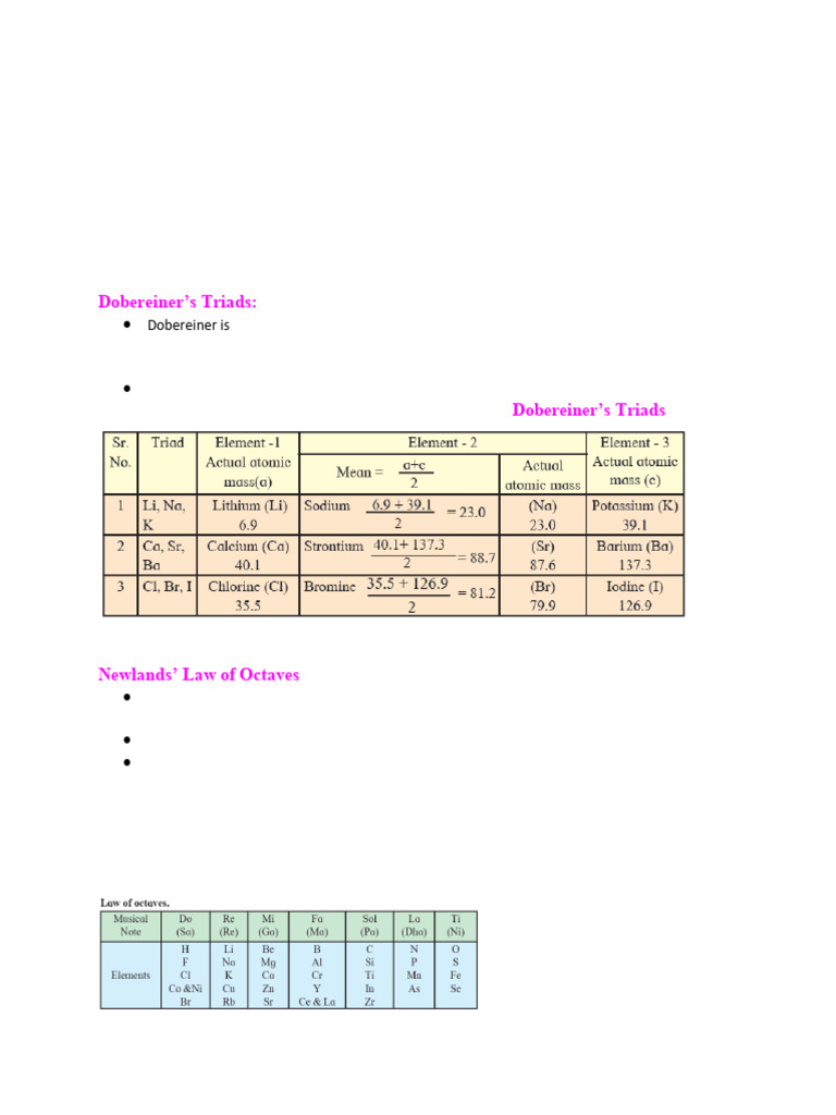 chemical properties and called them triads. He arranged the three elements in a triad in an