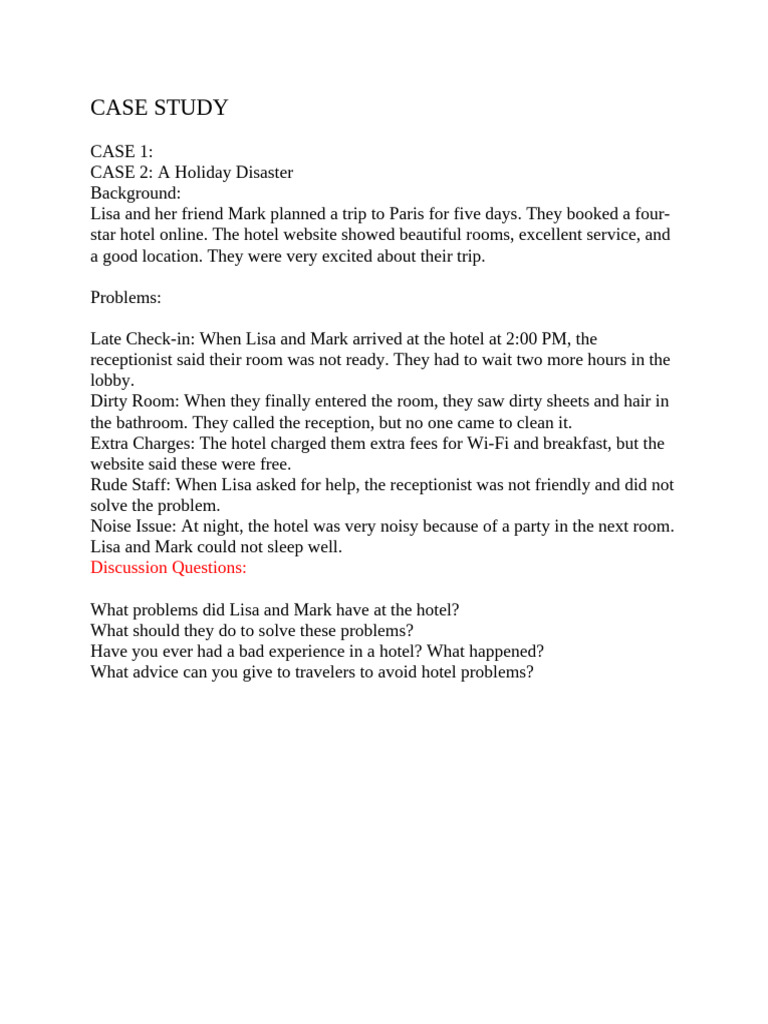 Late Check-in: When Lisa and Mark arrived at the hotel at 2:00 PM, the