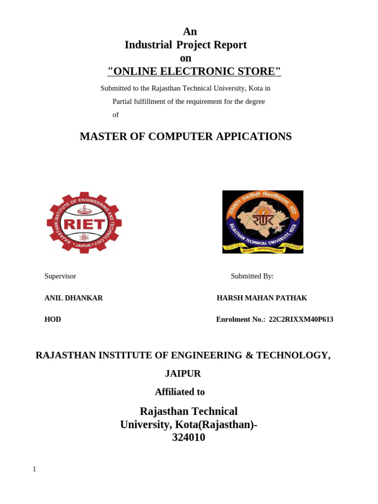 The Project work has been prepared as per the regulations of Rajasthan Technical University,
