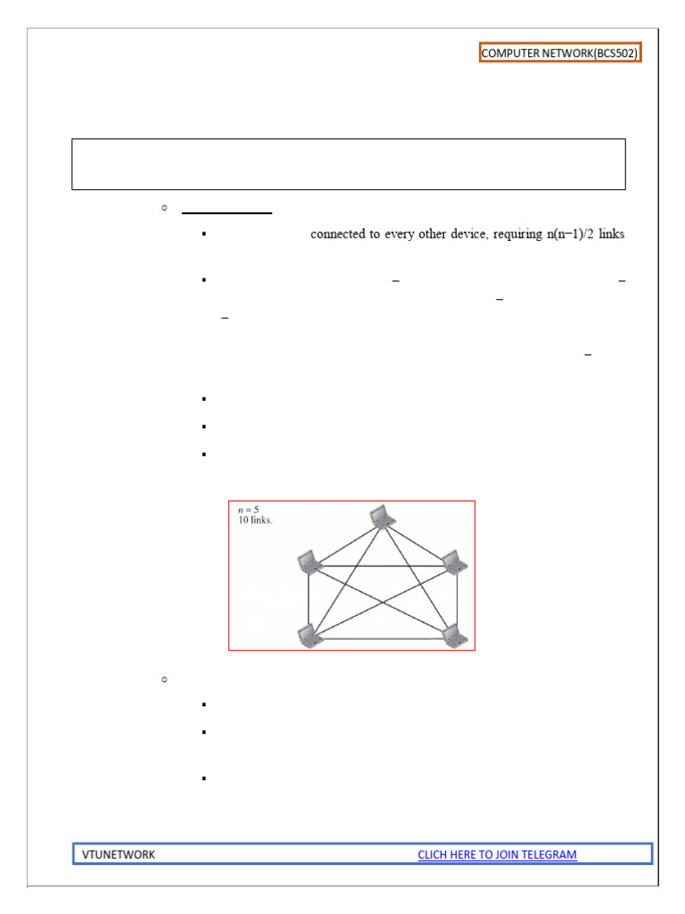 Every device is connected to every other device, requiring n(n−1)/2 links