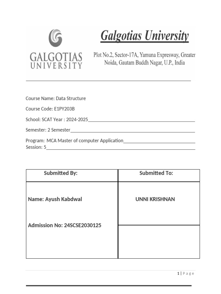 Name: Ayush Kabdwal UNNI KRISHNAN