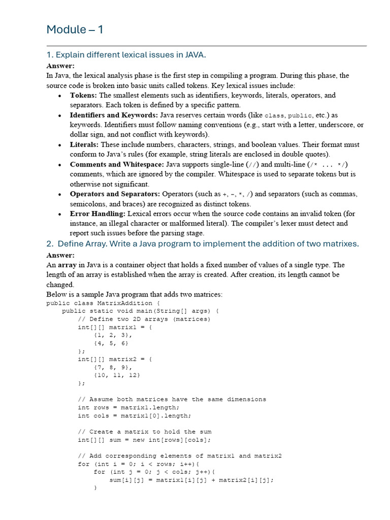 2. Define Array. Write a Java program to implement the addition of two matrixes.