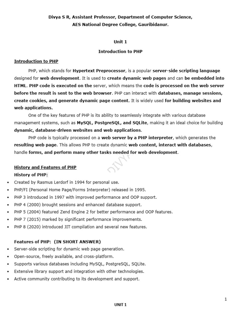 Unit 1 Introduction To PHP Updated