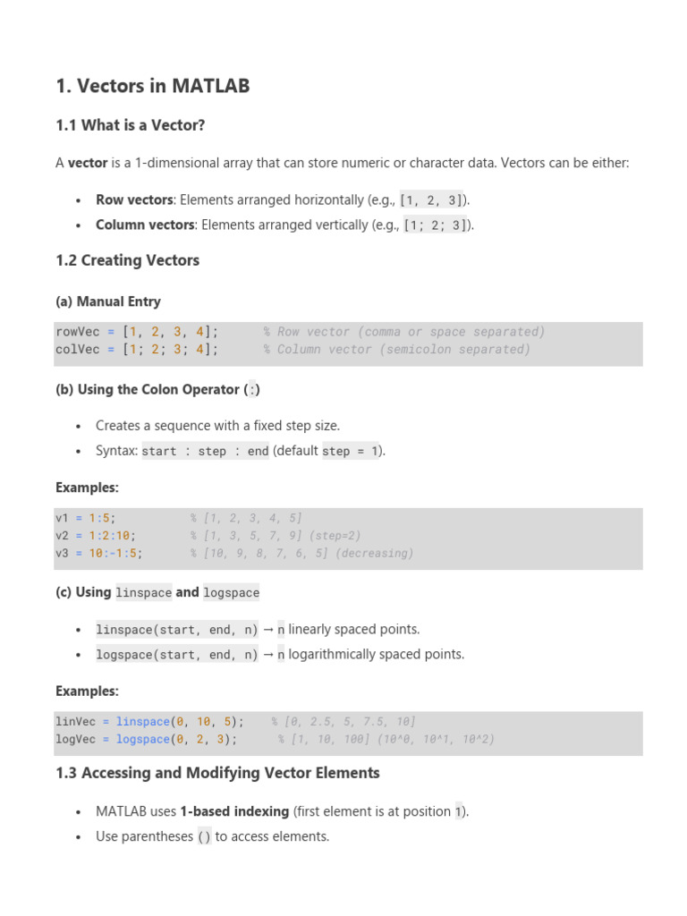 1. Vectors in MATLAB