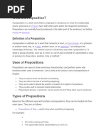 functions when used in sentences. Let us look at the various uses of prepositions in