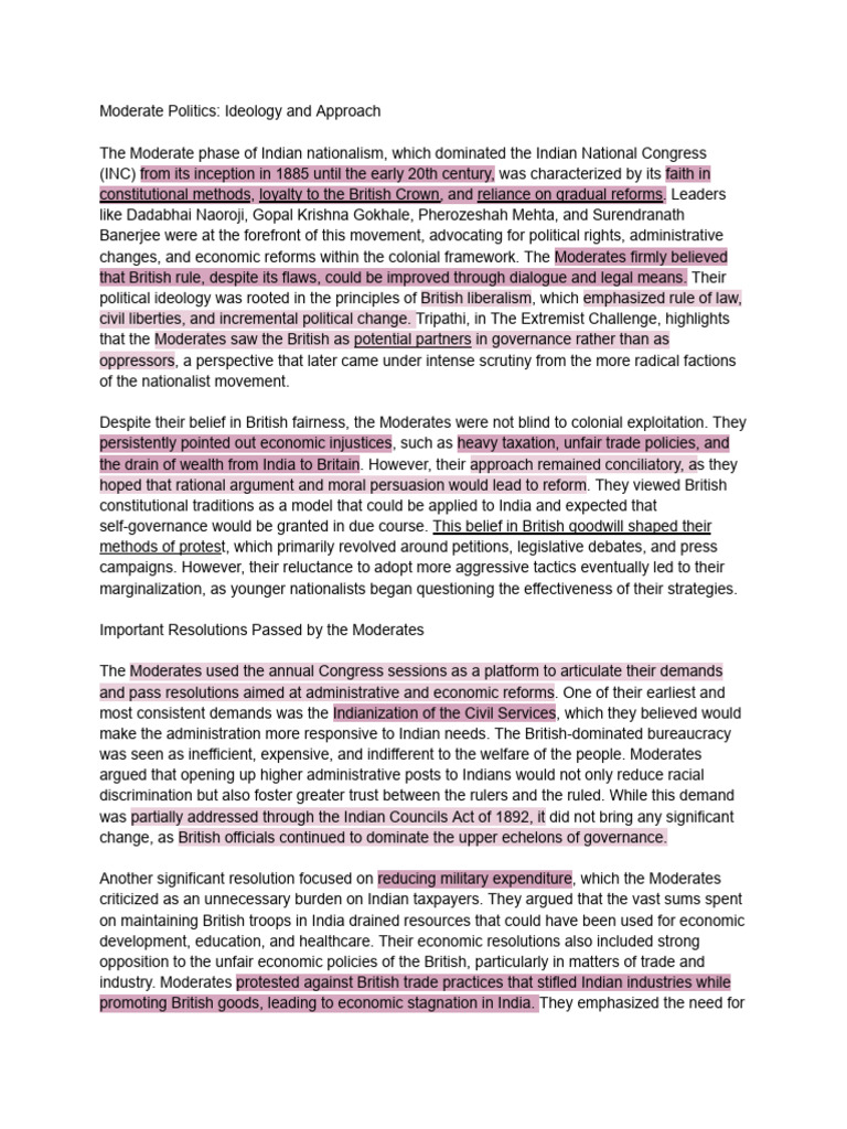 changes, and economic reforms within the colonial framework. The Moderates firmly believed