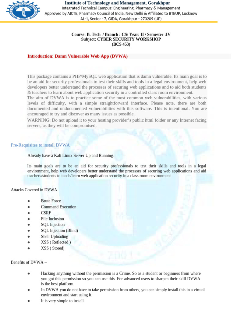 ● In DVWA you do not have to take permission from others, you can simply install this in a virtual