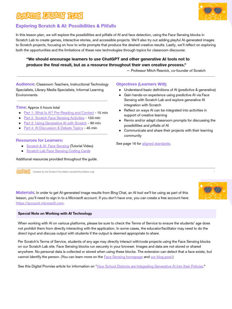 instance, if you asked the AI to give you ideas for a Scratch Lab Face Sensing