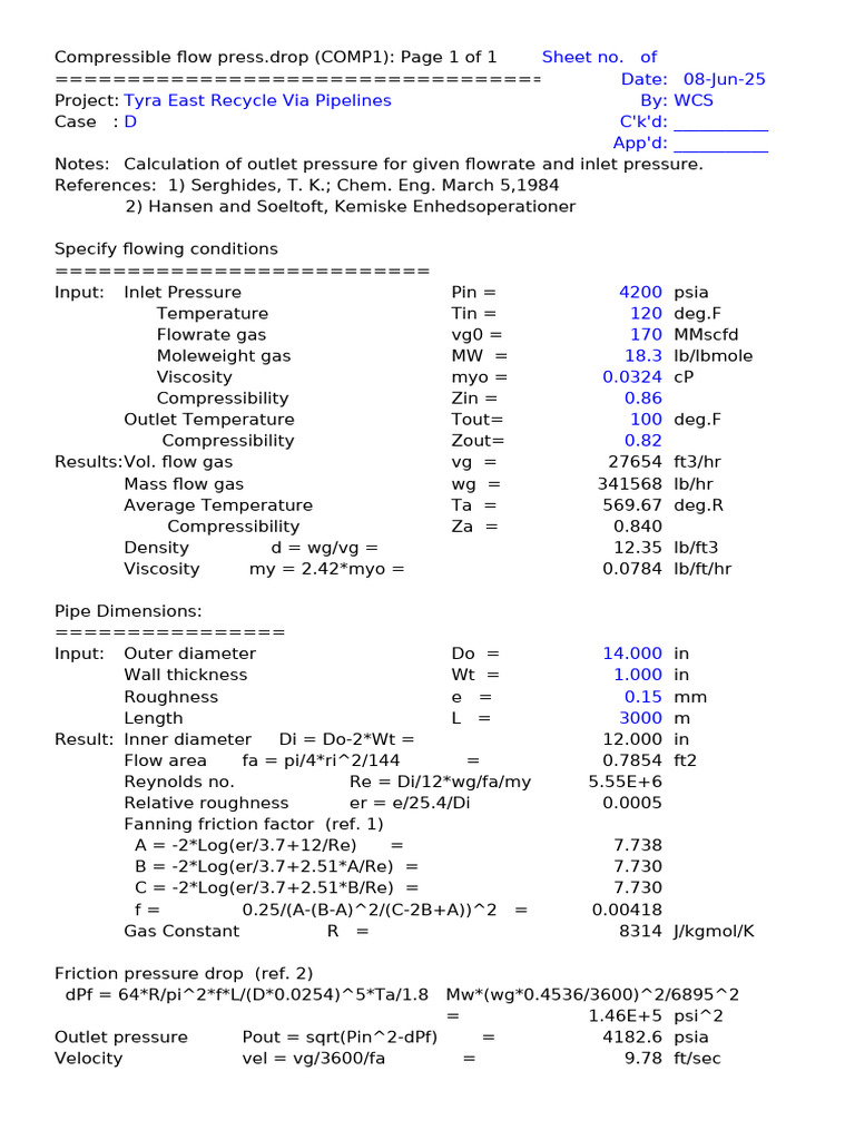 Compressible flow press.drop (COMP2): Page 1 of 1 Sheet no. of