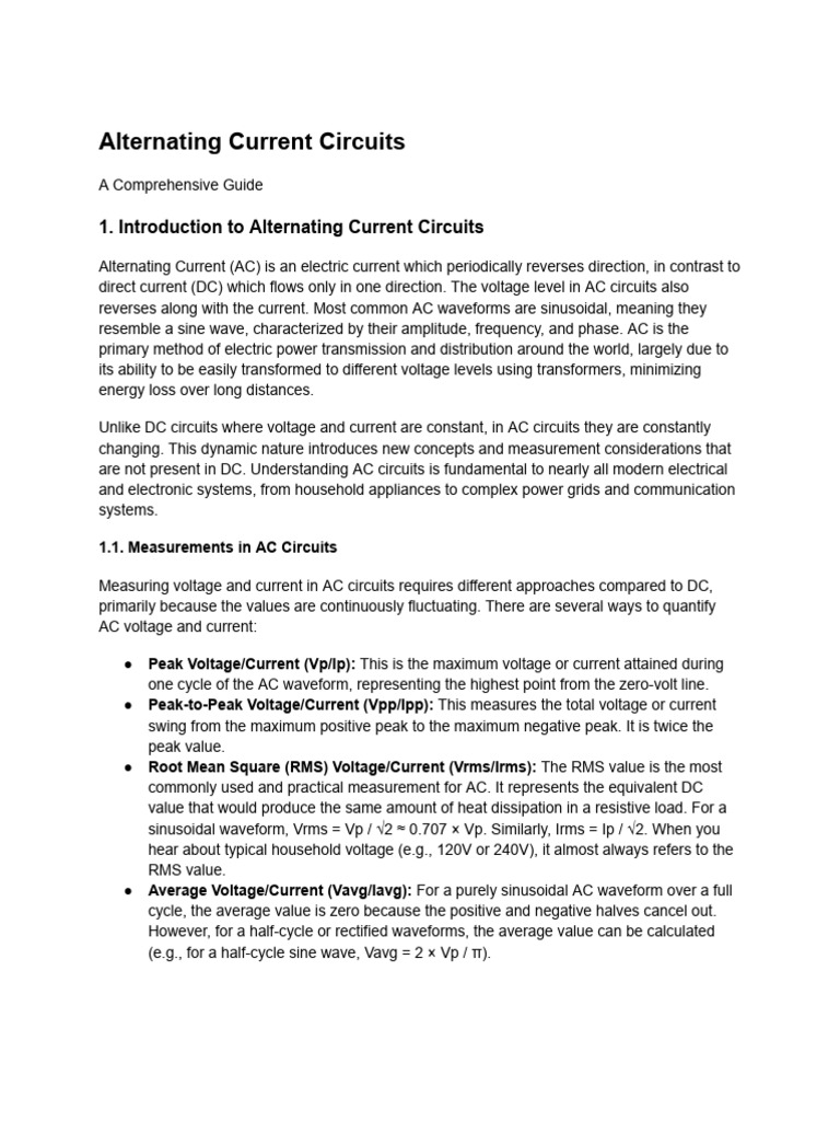 are not present in DC. Understanding AC circuits is fundamental to nearly all modern electrical