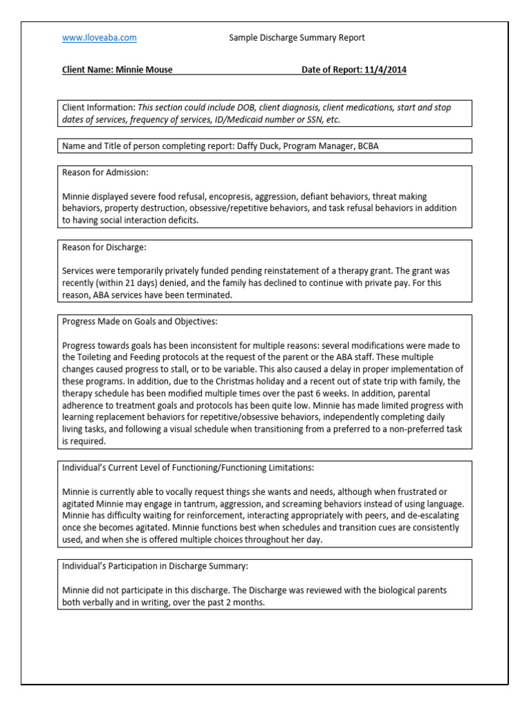 Client Name: Minnie Mouse Date of Report: 11/4/2014