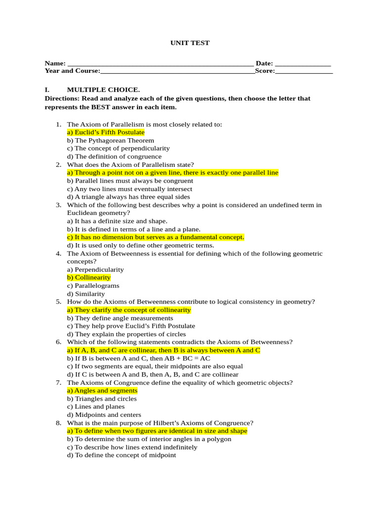 Directions: Read and analyze each of the given questions, then choose the letter that