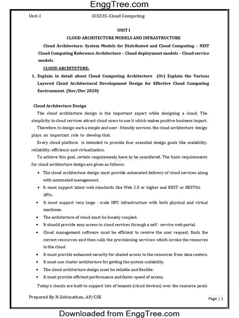 1. Explain in detail about Cloud Computing Architecture (Or) Explain the Various