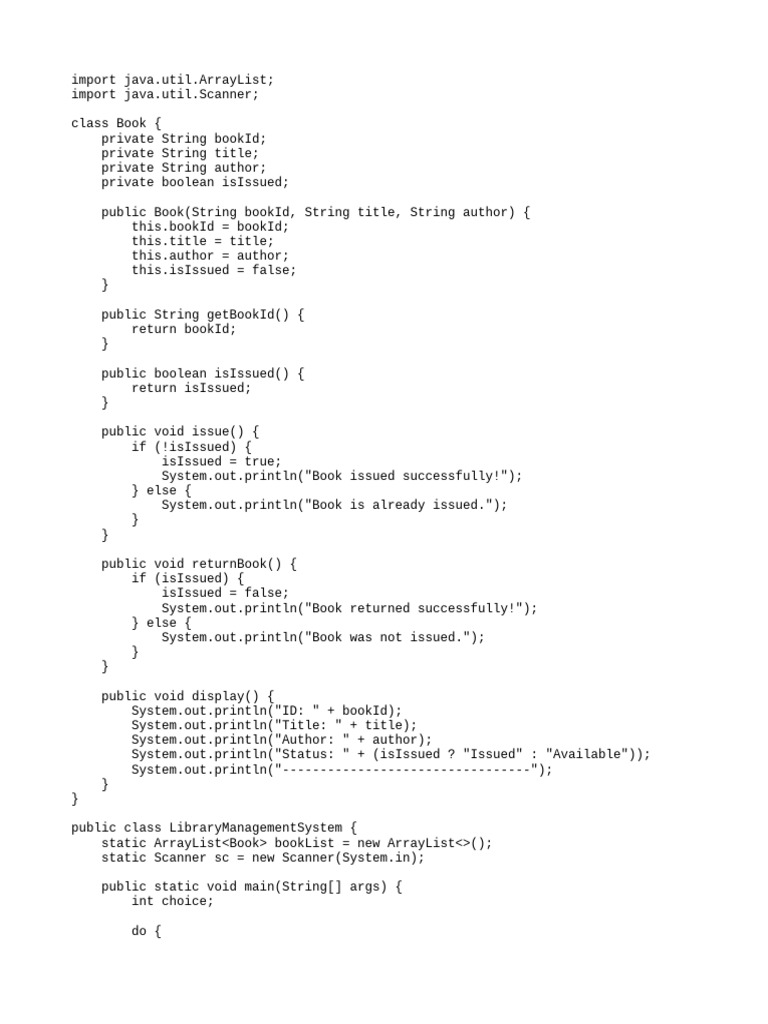 System.out.println("Status: " + (isIssued ? "Issued" : "Available"));