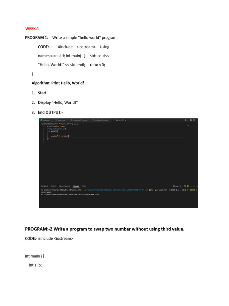 PROGRAM:-2 Write a program to swap two number without using third value.