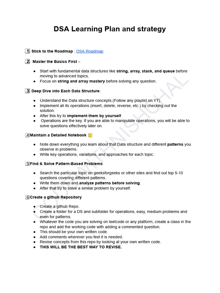 1️⃣. Stick to the Roadmap : DSA Roadmap