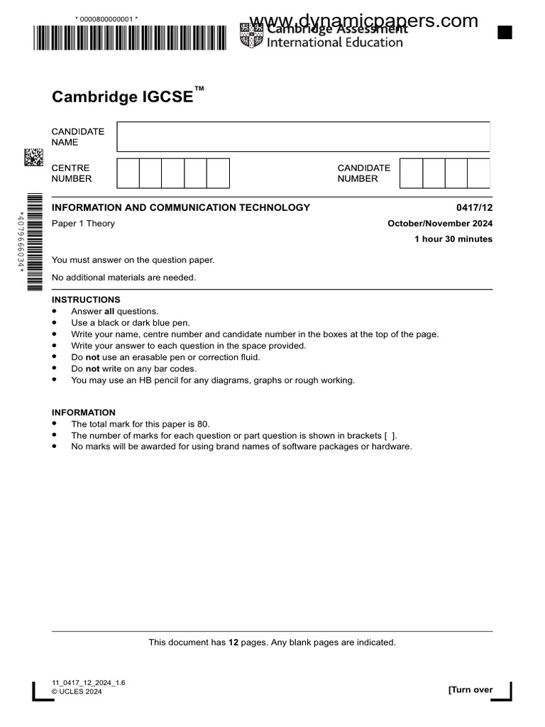 • Write your name, centre number and candidate number in the boxes at the top of the page.