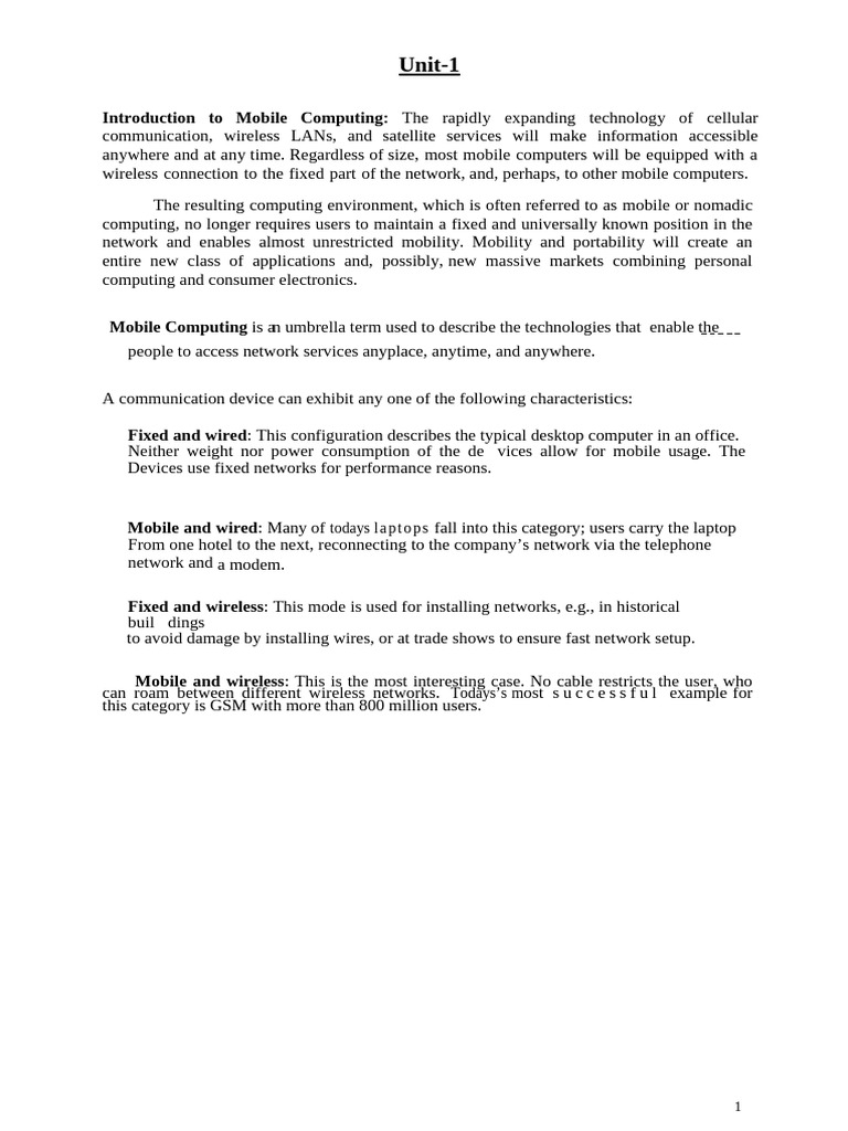 Mobile Computing is an umbrella term used to describe the technologies that enable the