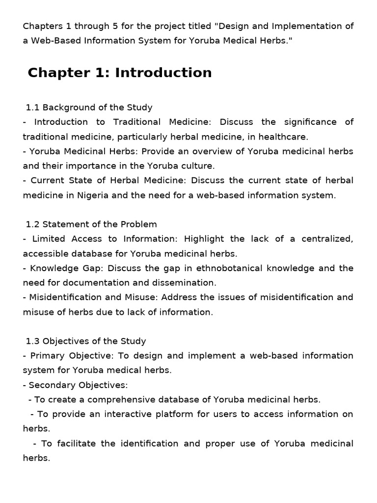 - To create a comprehensive database of Yoruba medicinal herbs.