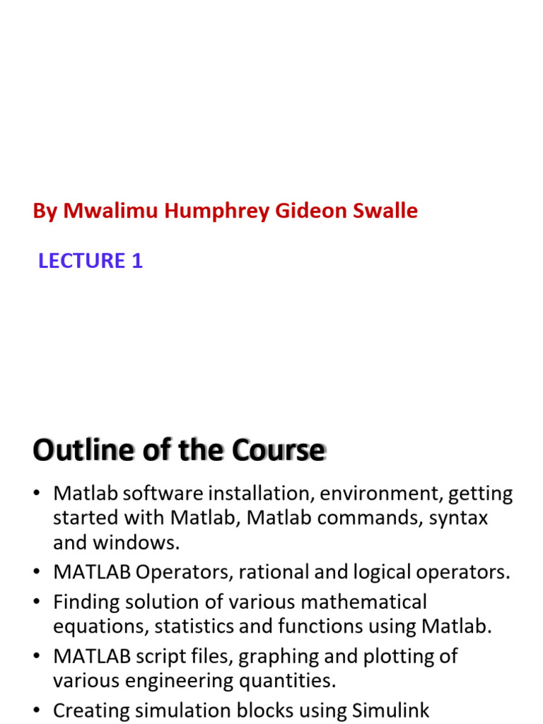 • Griffiths, D. (1999). An Introduction to Matlab.