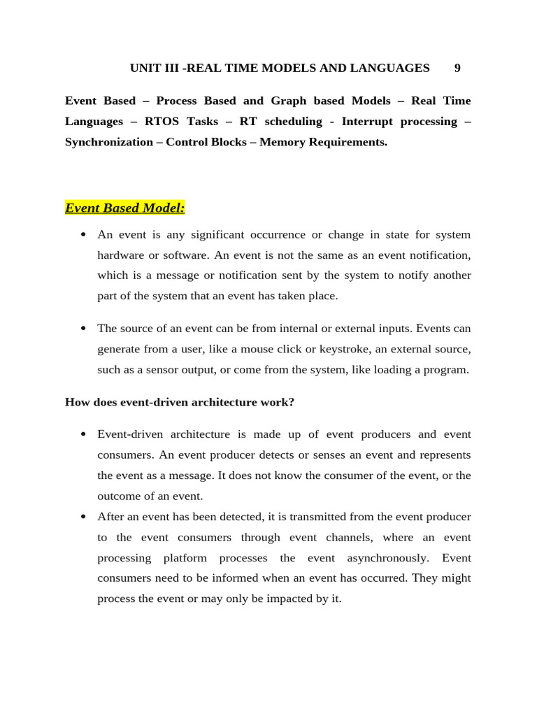 UNIT III -REAL TIME MODELS AND LANGUAGES 9
